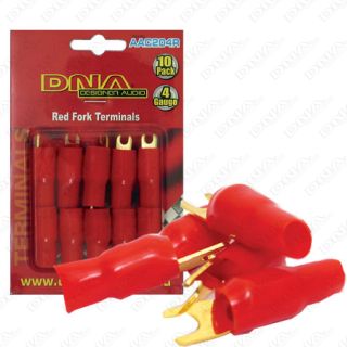 Gold plated 4 gauge female fork terminal with colour coded silicon rubber insulators