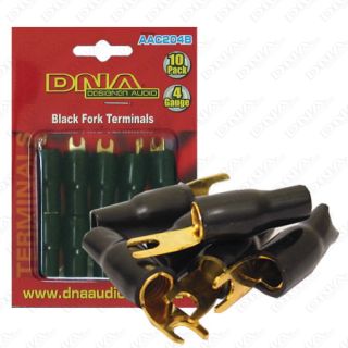 Gold plated 4 gauge female fork terminal with colour coded silicon rubber insulators