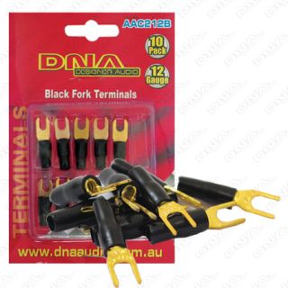 Gold plated 12 gauge fork terminal with colour coded silicon rubber insulators