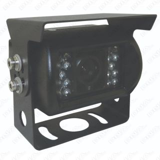 This all metal waterproof construction CCD camera is ideal for trucks or buses where heavy duty application is required. Operates on 12V or 24V vehicles and includes built in IR LEDs for excellent night visibility and microphone for extra safety.