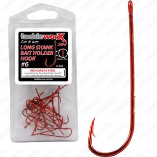 The long shank bait holder hooks are available in a variety of sizes to target fish species like bream, flathead, flounder, luderick, perch, redfin, trout, and whiting. Use with a variety of baits ranging from nippers to prawns, worms to whitebait etc for a great variety of fishing situations and species.